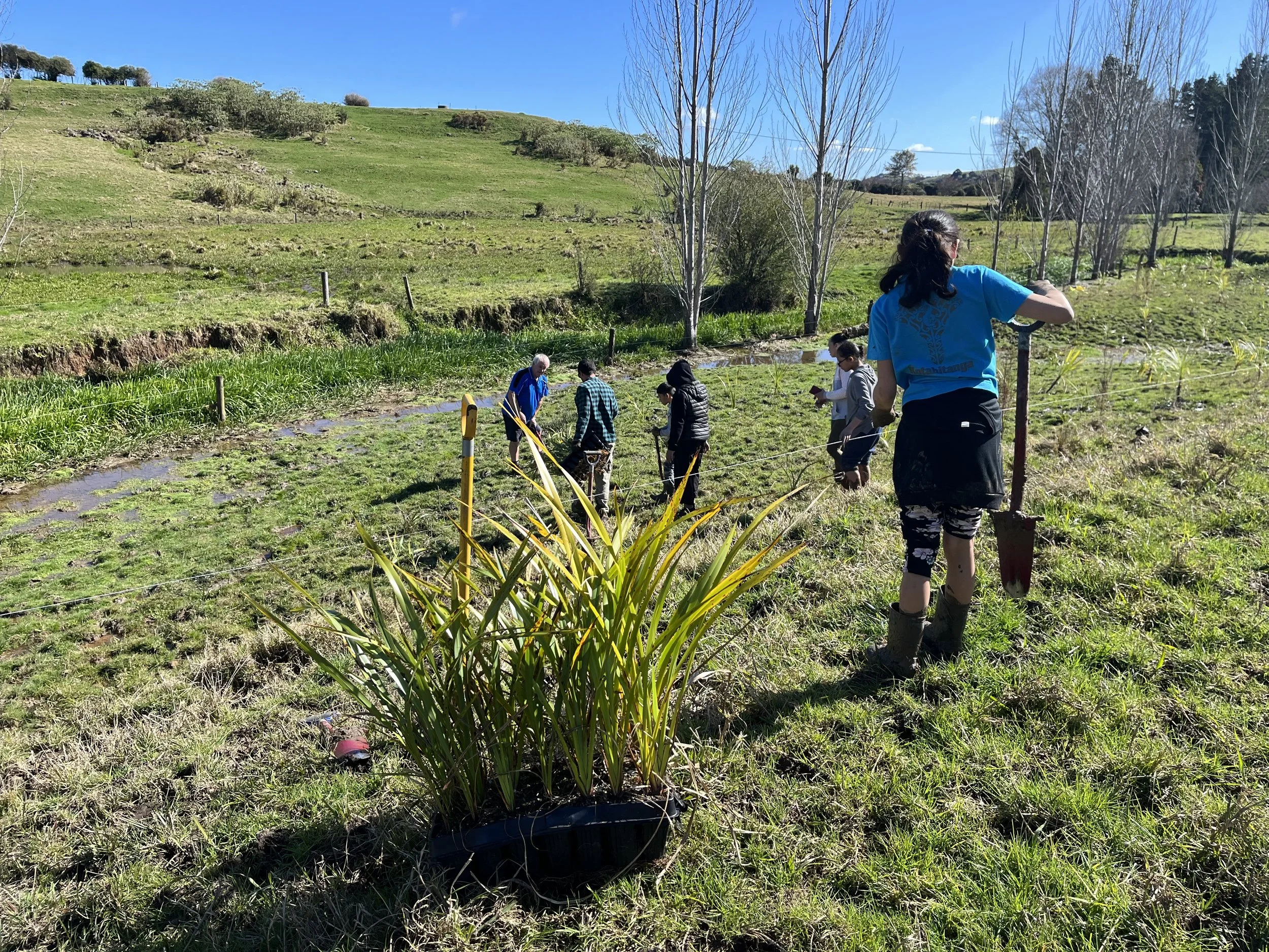 We have many ongoing projects and Kaupapa throughout the year. Planting days with Primary Schools located near our Awa. We facilitate Wananga which are held in conjunction with Whitebait Connection that teach our older students about how we monitor the cleanliness our Awa. Similar wananga and trainings are held with our team to keep them up to date with the latest on our river health .